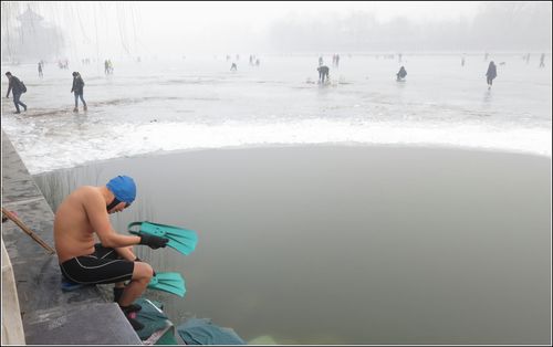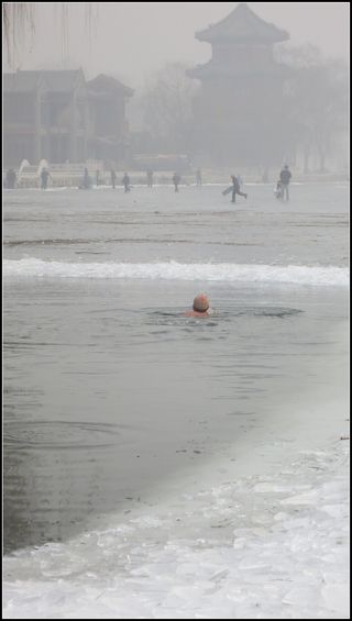 Sin ser tan extremo como lanzarse a ese agua, pasar las horas esperando a que algún pez -posiblemente radiactivo o con tres ojos- pique el anzuelo bajo el hielo tampoco es, en fin, mi actividad predilecta para el fin de semana. Muchos pescadores -los hay a patadas en los lagos y canales helados de la ciudad- ni siquiera llevan guantes. Con razón dicen que los laowei (los guiris) somos unos quejicas.